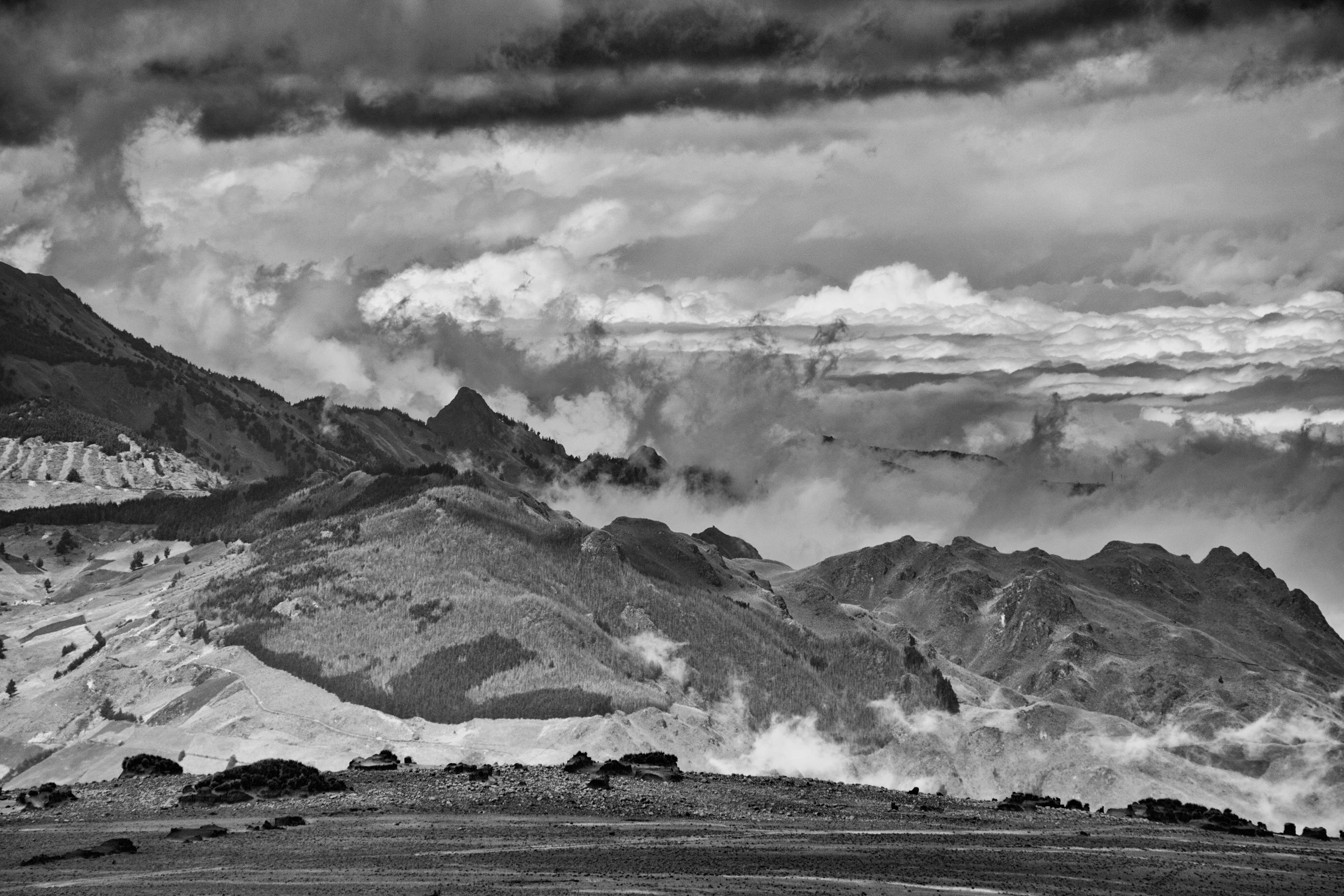 Esta propuesta parte de la pintura The Heart of the Andes (1859) de Frederick Edwin Church. En el siglo XIX este artista viajó al Ecuador y realizó estudios in-situ de las montañas de esta cordillera. Después de su viaje y basado en estudios, Church pintó el Chimborazo, y posteriormente el Cotopaxi en 1862, siguiendo el estilo romanticista de la época. Su práctica pictórica fue fuertemente influenciada por la lectura de Cosmos (1845) de Alexander Von Humboldt.